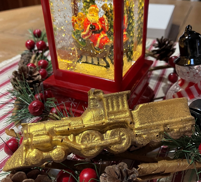 A dear friend from church came up to me yesterday and said, "I have something to re-gift to you" and handed me a small, fancy, white box. Okay... In it was the gold-dusted chocolate locomotive pictured above. It actually was a perfect gift for me as it hit two of my favorite things at once: chocolate and trains.