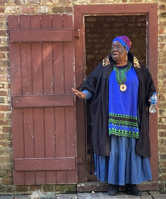 But the "big discovery" was the Gullah (or Geechee, sometimes) people (Wikipedia) whom we had never heard of before (or never remembered maybe from school days). (The vowels in Gullah sound like the vowels in bubba.) We stumbled onto this discovery at the Boone Hall Plantation in Mt. Pleasant, SC (just over the bridge from Charleston). A Gullah woman (pictured at right) gave a roughly 40-minute presentation about the Gullah people, part of their story, some music, and a bit of the language. Fascinating!